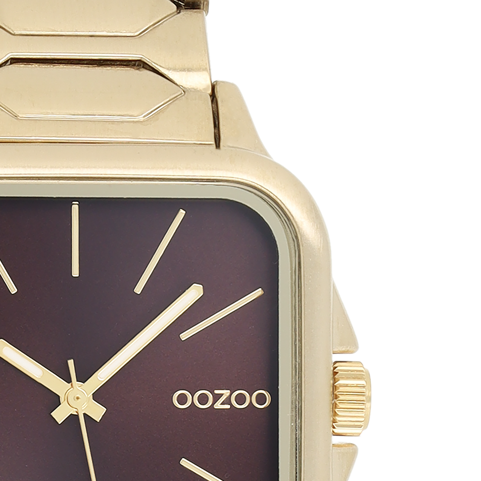 Stand out with this beautiful square unisex design from the trendy OOZOO Timepieces collection. The C11607 has a gold coloured stainless steel bracelet and 44 mm gold coloured metal watch case. You are making quite the fashion statement with this fig red sunray dial, gold coloured stripes digits and matching hands. This essential watch for your wardrobe has a mineral glass, stainless steel backplate and is nickel safe. This watch has a 2ATM Japanese movement and is covered by a 2 year warranty (see section 3 of our Refund, shipping & warranty policy).