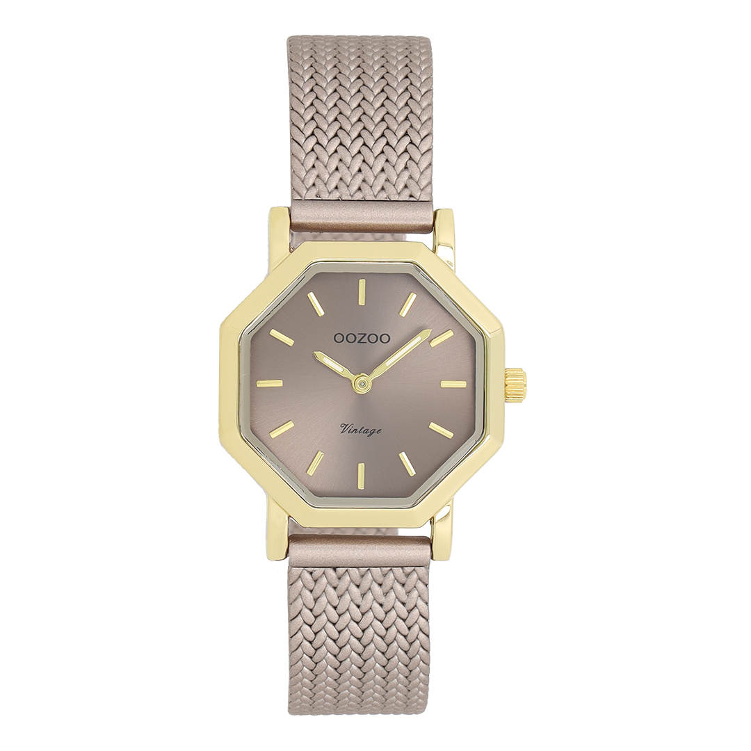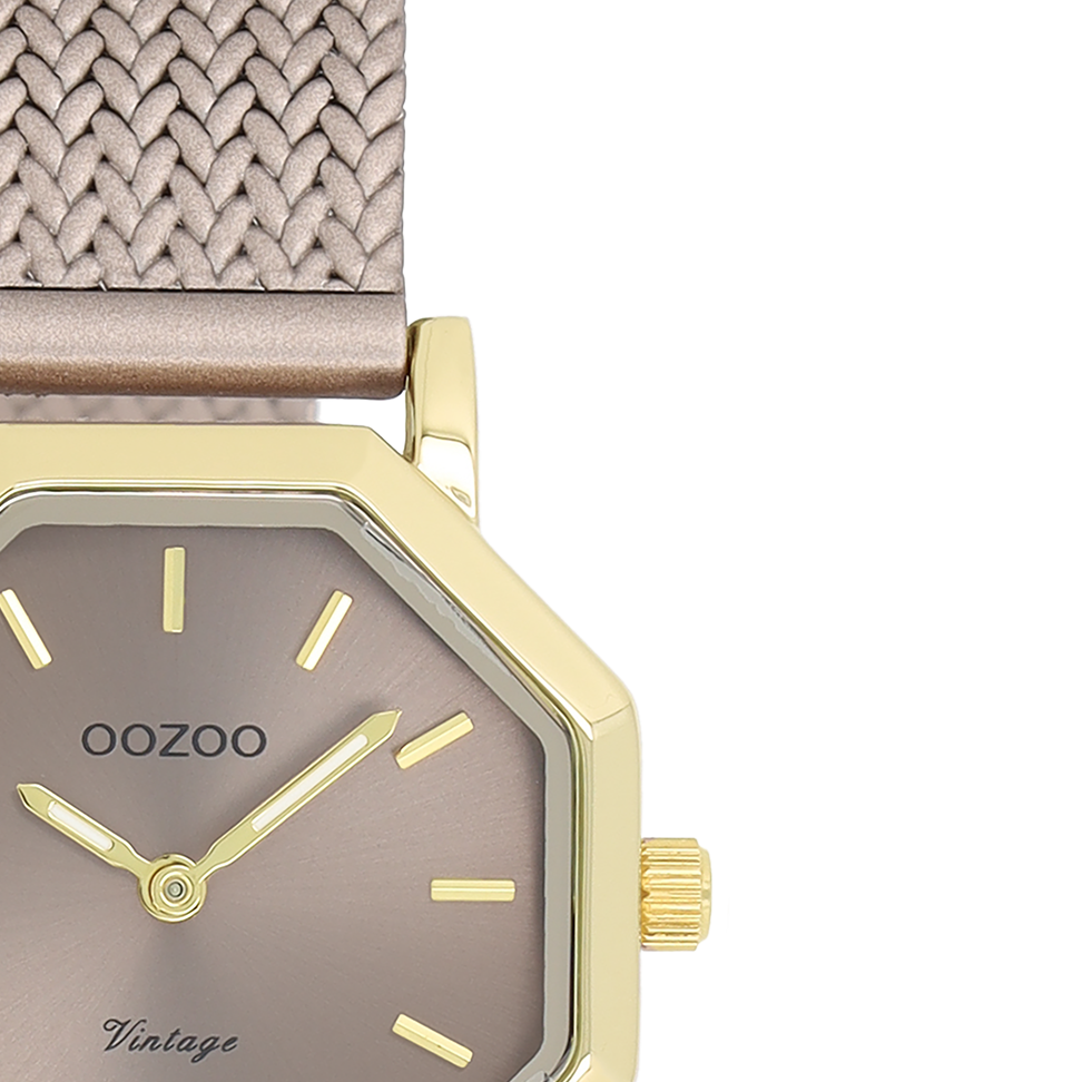 Gold coloured OOZOO watch with taupe metal v-mesh bracelet - C20439