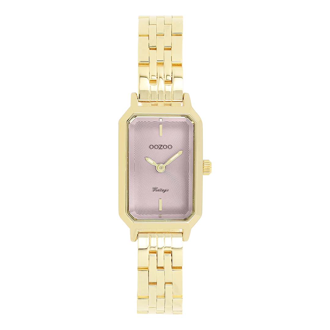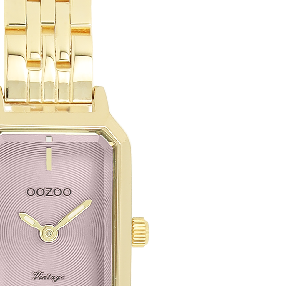 The classic look stays key in this trendy series and therefore, this rectangular OOZOO vintage design with a playful wink is the season must-have! This ladies watch is the perfect combination of fashion and comfort with its 22x19 mm gold coloured metal watch case and pink circle pattern dial. The gold coloured stainless steel bracelet makes this watch a trendy accessory, which you can wear every day. The dial has gold coloured stripes digits and matching hands. The C20458 adds the sparkle to your outfit. The mineral glass lays in a 9,5 mm slim metal watch case with IP-plating. This design has a stainless steel backplate and is nickel safe. This watch has a 2ATM Japanese movement and is covered by a 2 year warranty (see section 3 of our Refund, shipping & warranty policy).