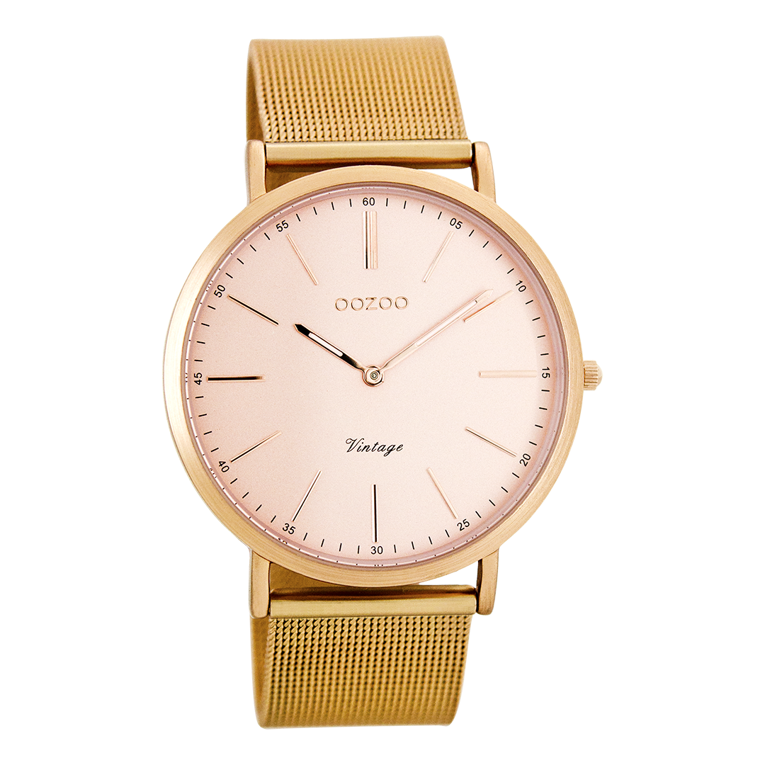Rose gold coloured OOZOO watch with metal mesh bracelet - C7391