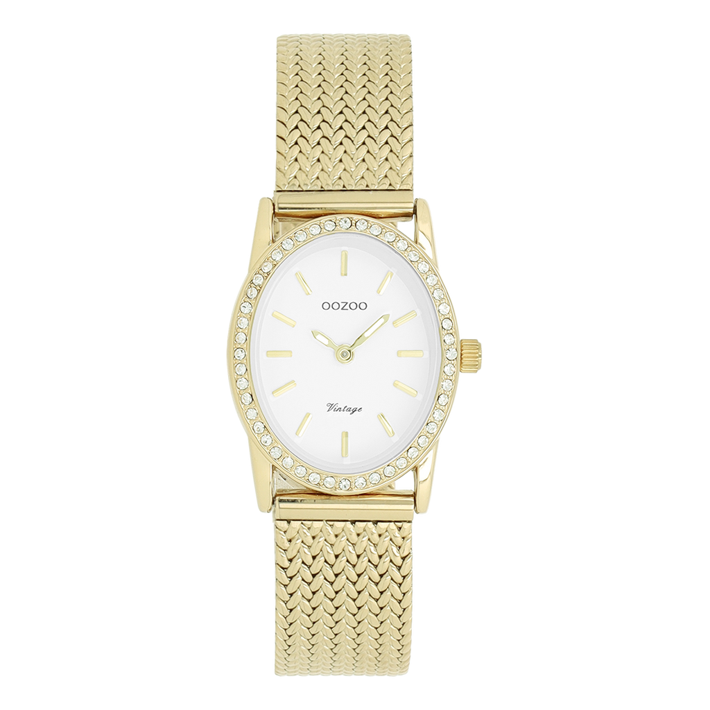 Gold coloured OOZOO watch with metal v-mesh bracelet - C20438