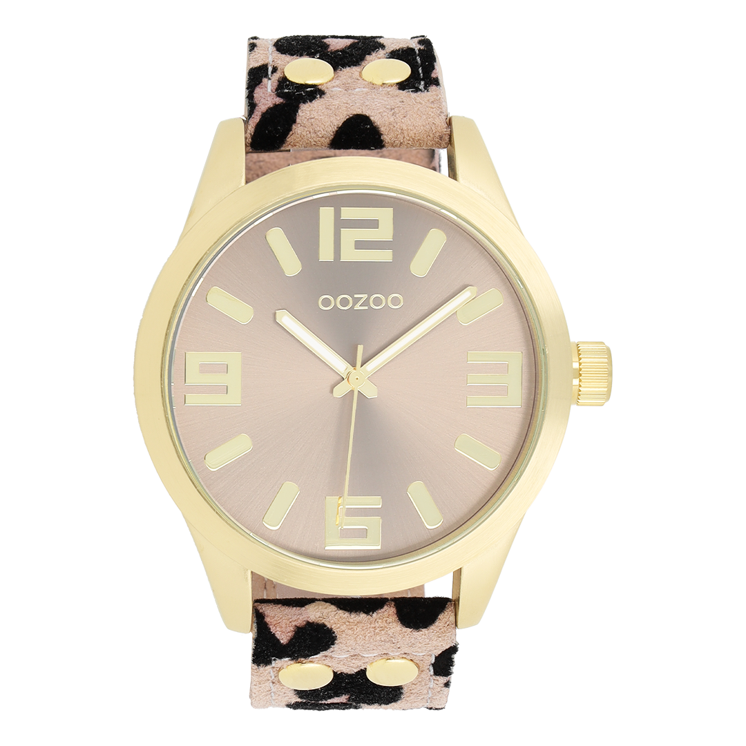 Stand out with this beautiful round ladies design from the trendy OOZOO Timepieces collection. The C1097 has a leopard print brown leather strap and 46 mm gold coloured metal watch case. You are making quite the fashion statement with this taupe sunray dial, gold coloured stripes and numbers digits and matching hands. This essential watch for your wardrobe has a mineral glass, stainless steel backplate and is nickel safe. This watch has a 2ATM Japanese movement and is covered by a 2 year warranty (see section 3 of our Refund, shipping & warranty policy).