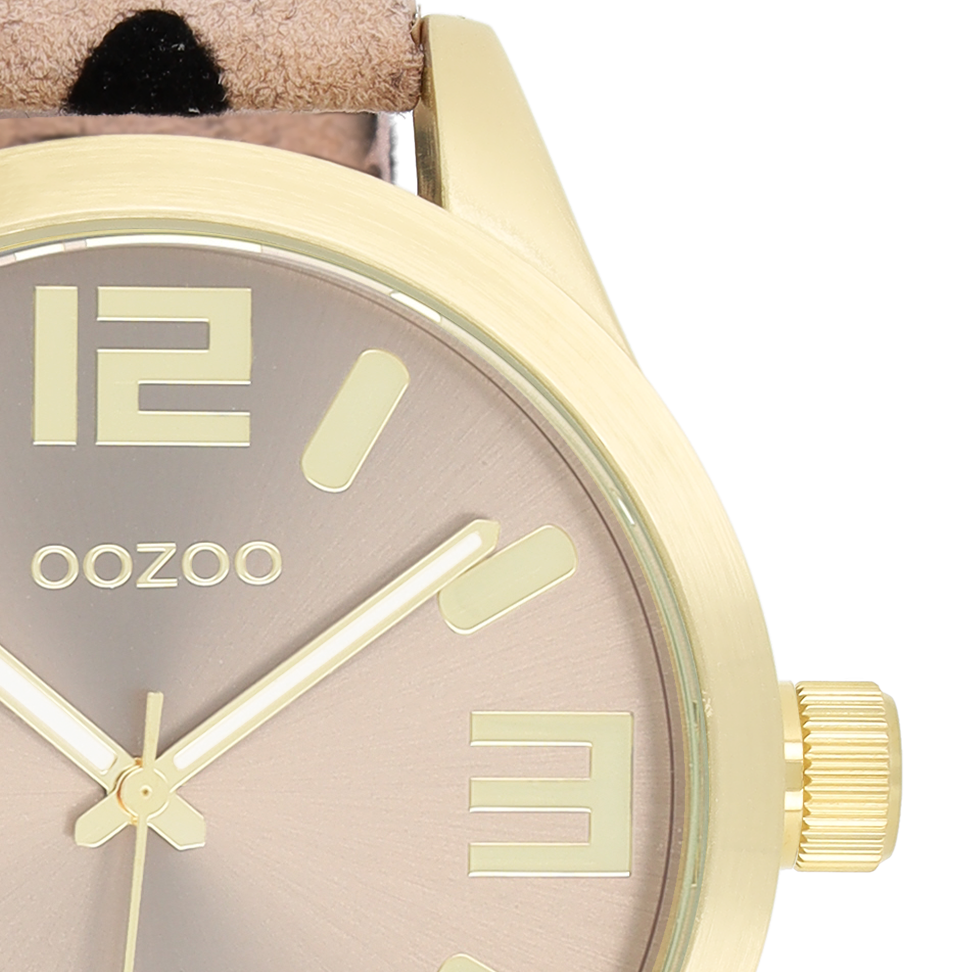 Gold coloured OOZOO watch with brown leather strap - C1097