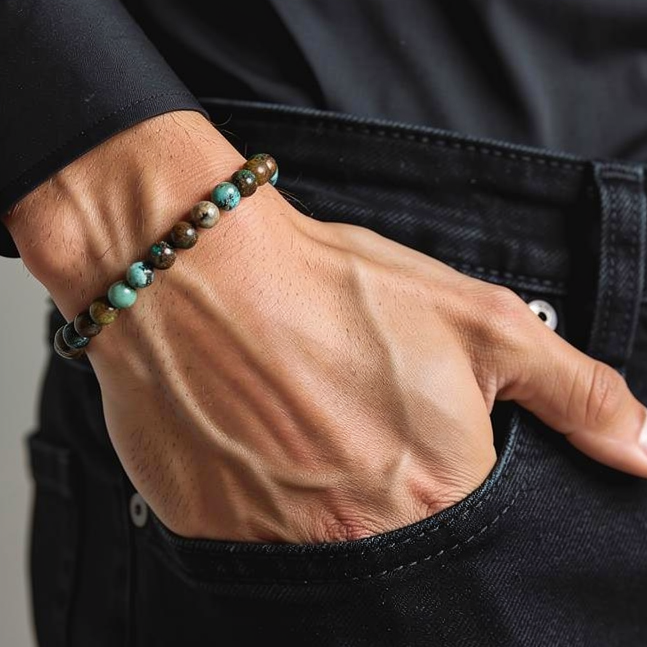 OOZOO Jewellery is a great addition to your personal accessories collection. This beautiful African turquoise stone bracelet is the perfect accessory to complete your outfit. The stone bracelet has a strong stainless steel clasp. Carefully selected materials come together in this collection to create a timeless and distinctive design. This product (SB-1060) is covered by a 3 months warranty (see section 3 of our Refund, shipping & warranty policy).