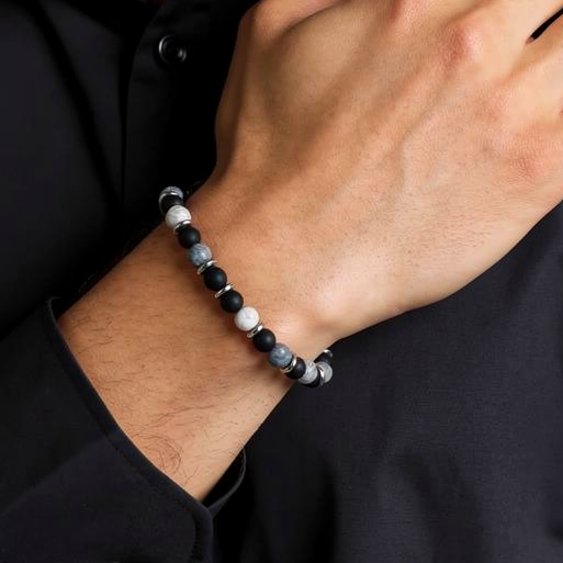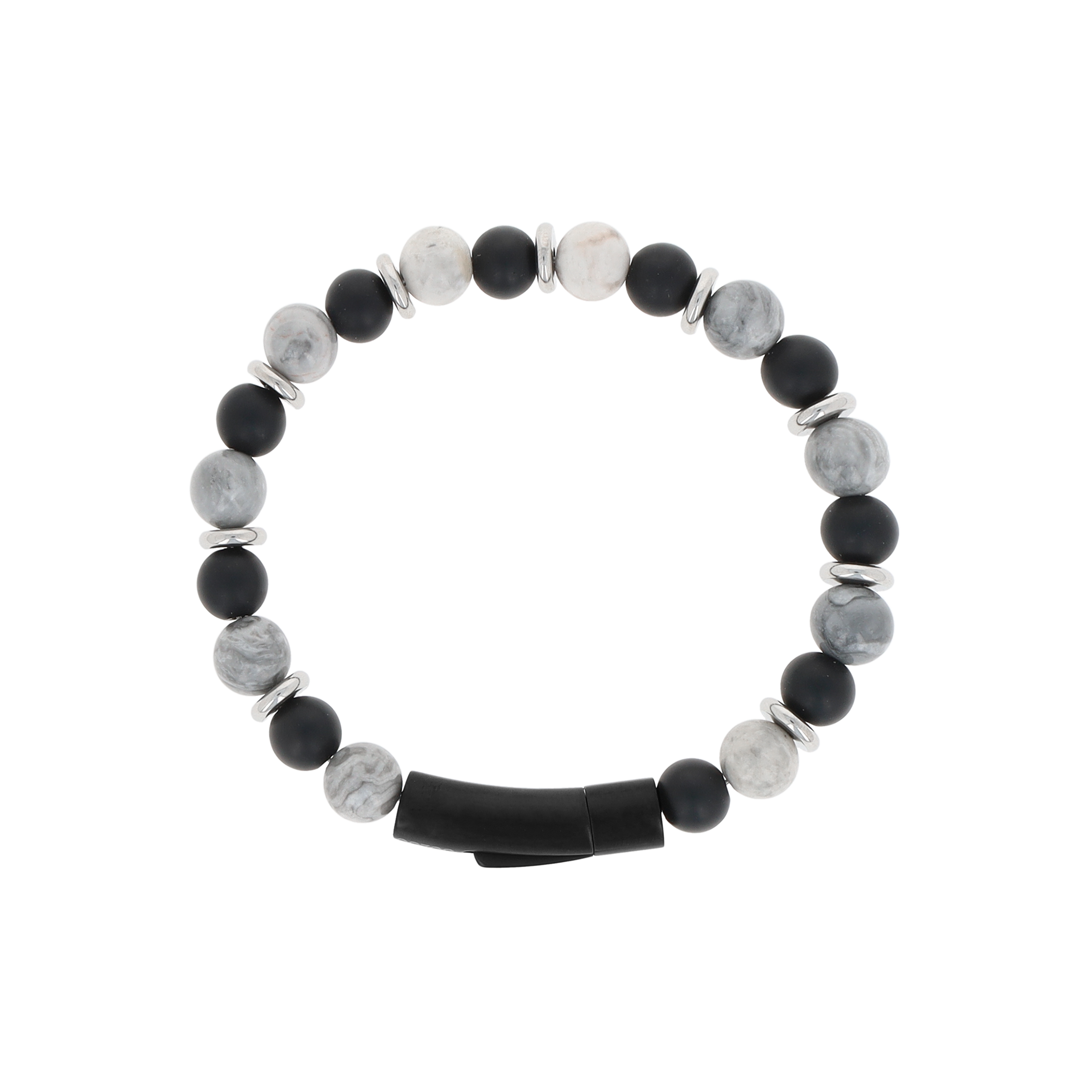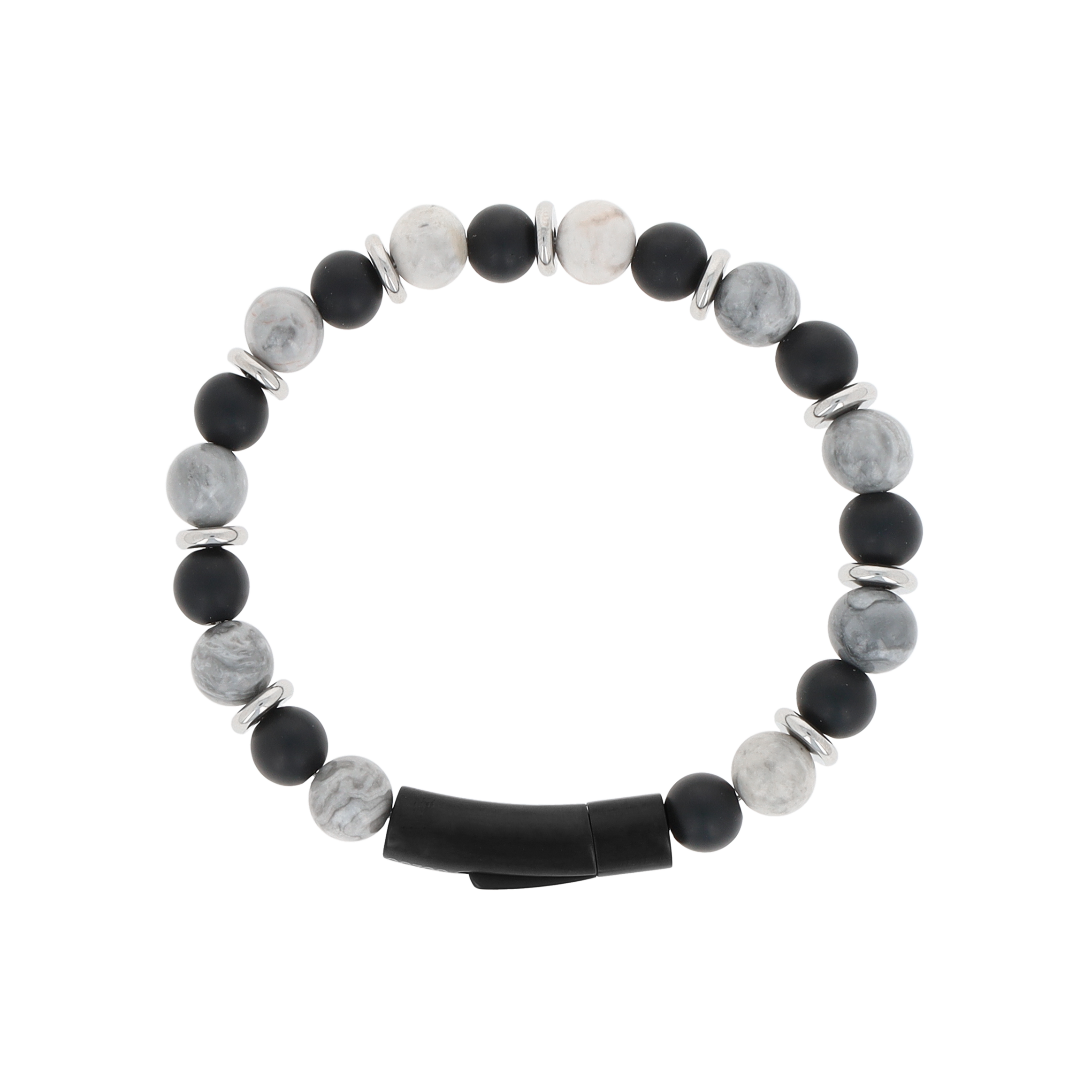 OOZOO Jewellery is a great addition to your personal accessories collection. This beautiful black onyx and map stone stone bracelet is the perfect accessory to complete your outfit. The stone bracelet has a strong stainless steel clasp. Carefully selected materials come together in this collection to create a timeless and distinctive design. This product (SB-1068) is covered by a 3 months warranty (see section 3 of our Refund, shipping & warranty policy).