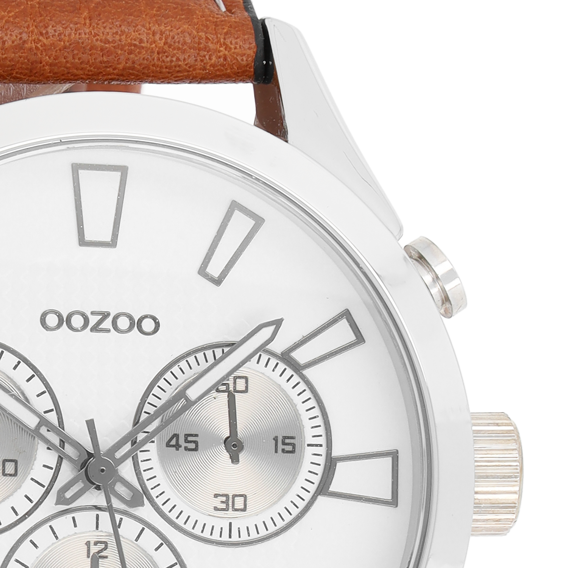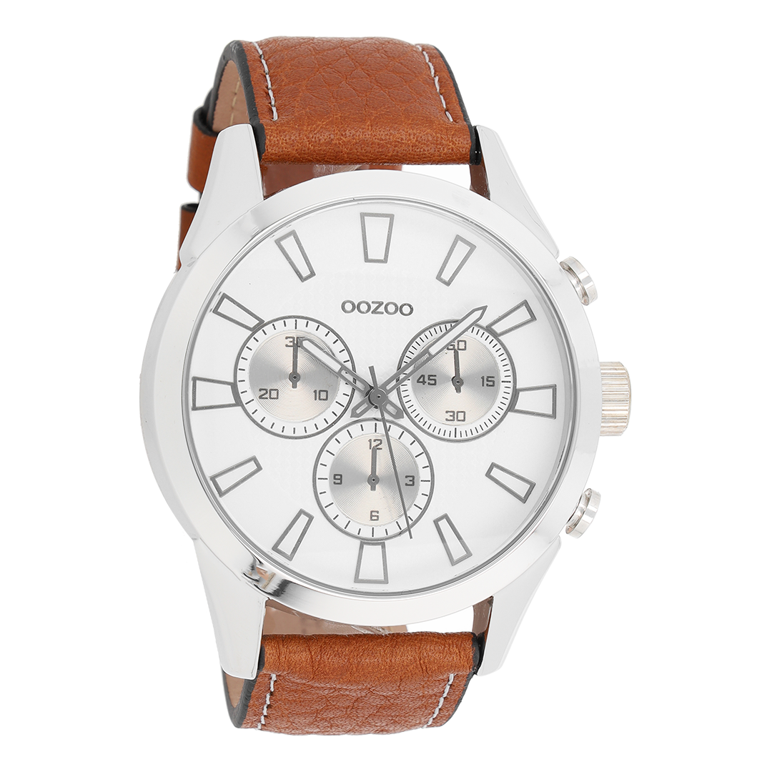Silver coloured OOZOO watch with cognac leather strap - C7470