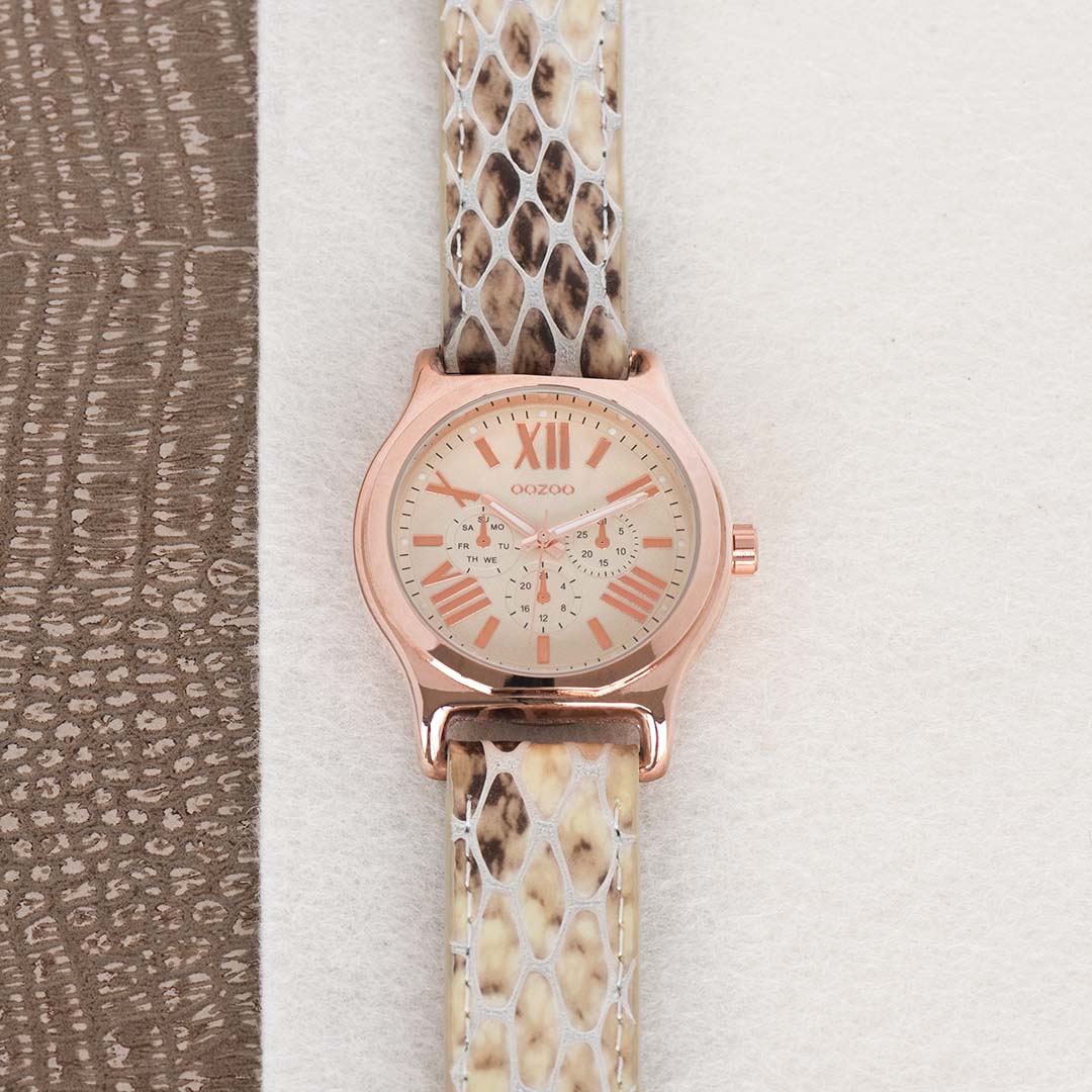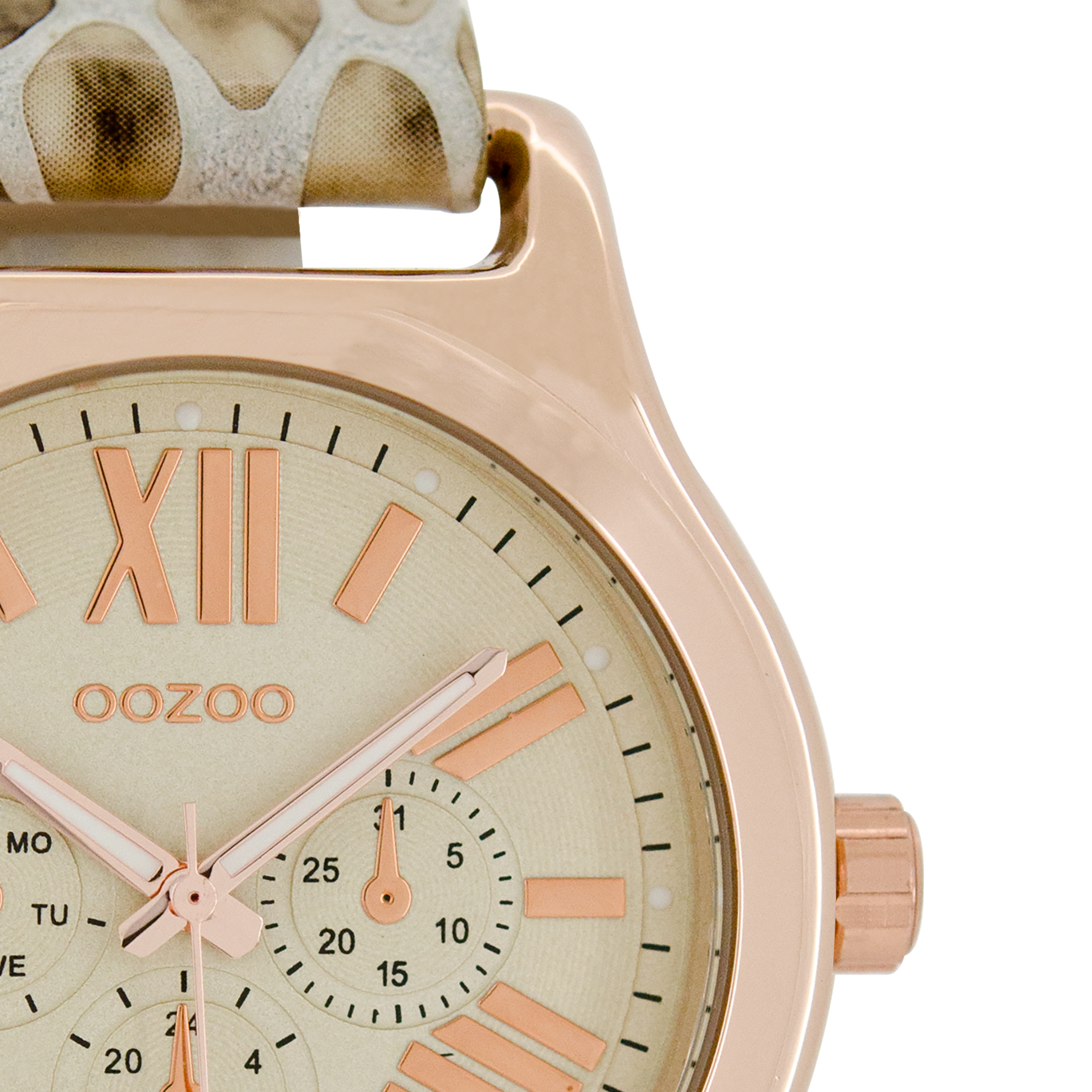 Rose gold coloured OOZOO watch with sand leather strap - C7613