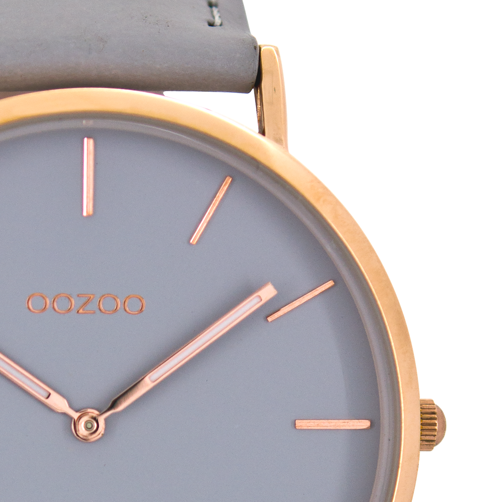 Rose gold coloured OOZOO watch with light grey leather strap - C8130