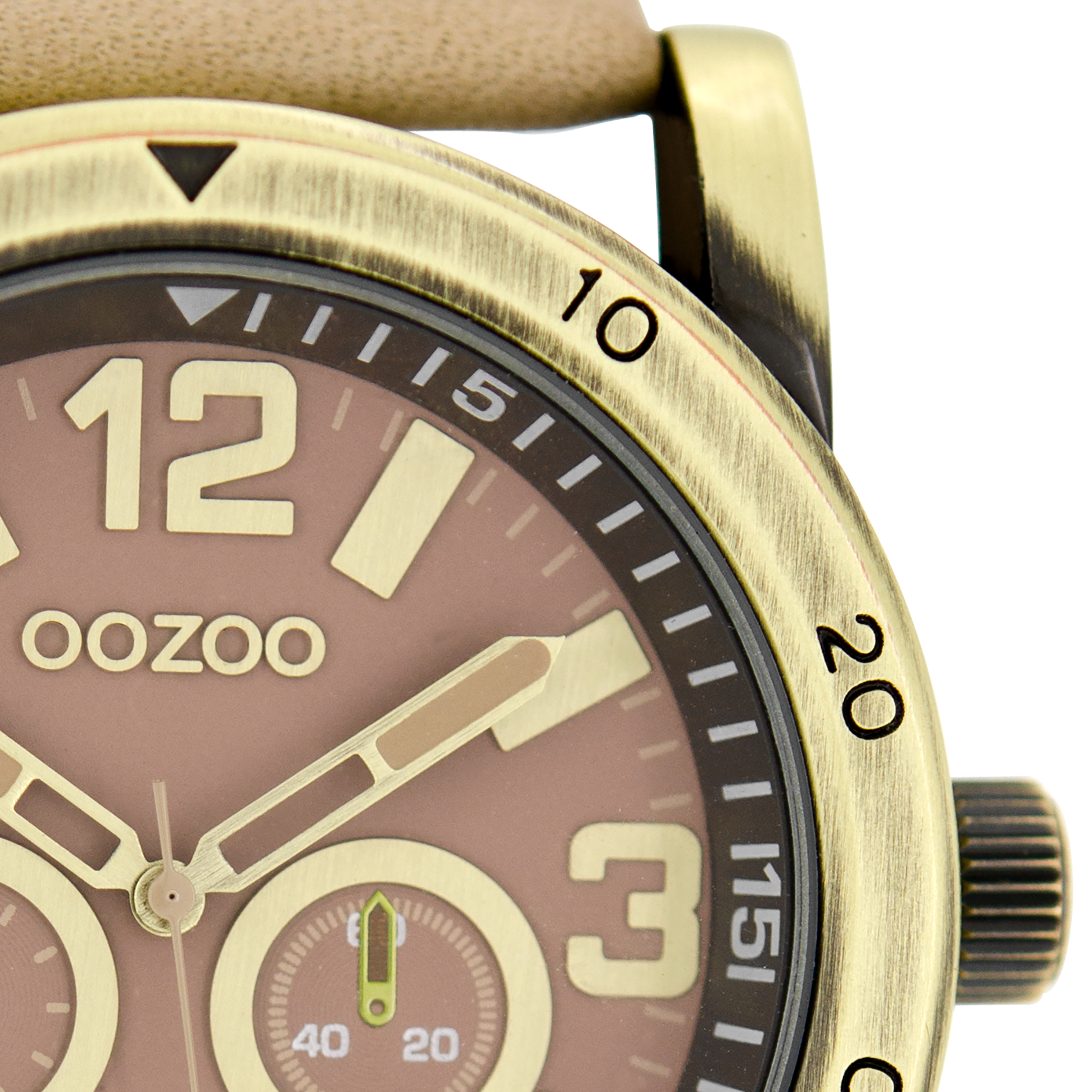 Gold coloured OOZOO watch with sand leather strap - C8305