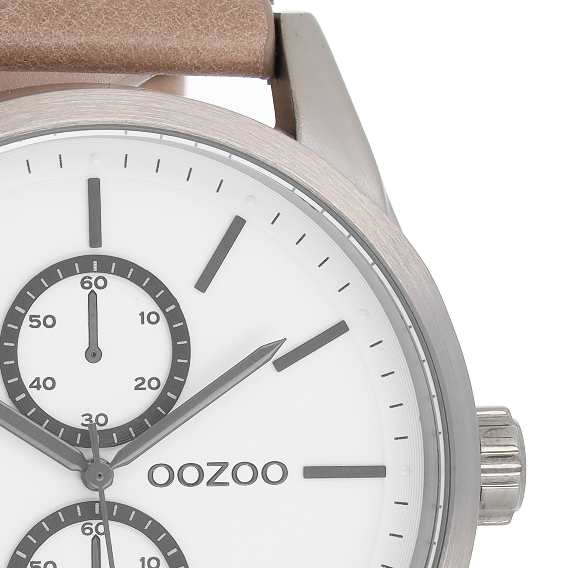 Stand out with this beautiful round gents design from the trendy OOZOO Timepieces collection. The C8511 has a grey leather strap and 50 mm titanium metal watch case. You are making quite the fashion statement with this white chrono dial, titanium stripes digits and matching hands. This essential watch for your wardrobe has a mineral glass, stainless steel backplate and is nickel safe. This watch has a 2 Japanese movement and is covered by a 2 year warranty (see section 3 of our Refund, shipping & warranty policy).